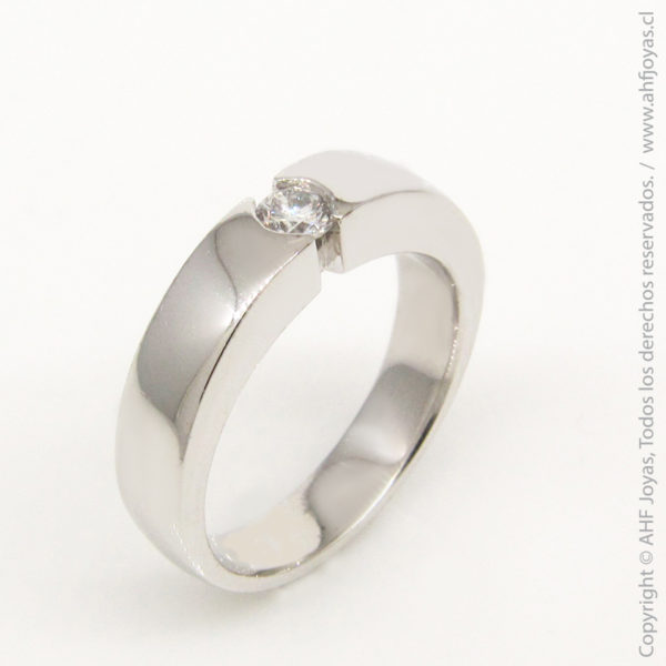 Anillo solitario moderno en Oro Blanco Paladio 18kt. con Diamante corte brillante engaste ciego. Código: A1189